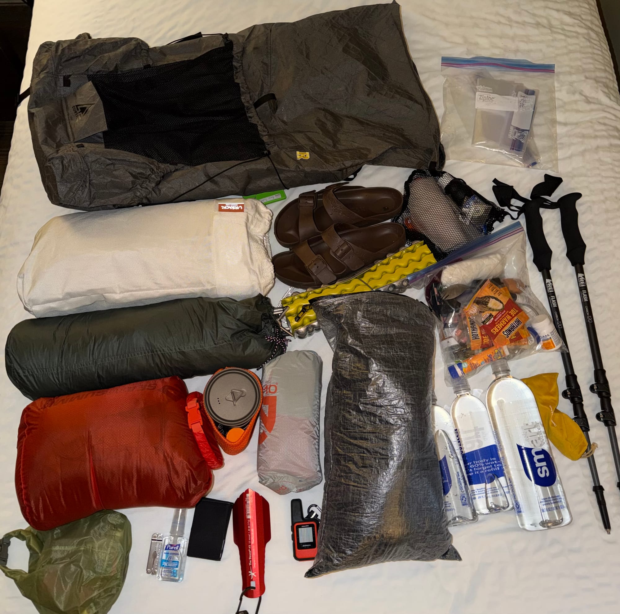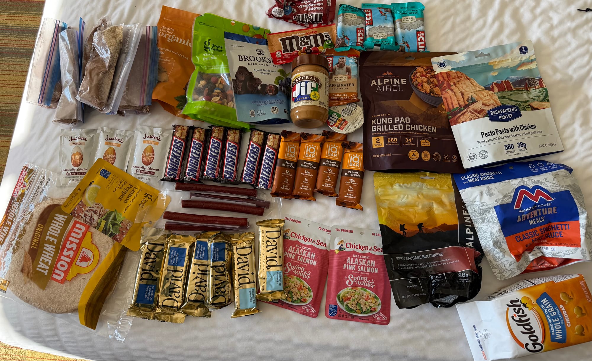 - Fully packed up. I feel good about the setup, except I almost certainly have too much food for the first stretch, and I refused to throw any of it away. I shall not starve. Lesson learned. Thanks to Mom for pretending to need travel snacks to save me from the embarrassment of throwing away food I just got.